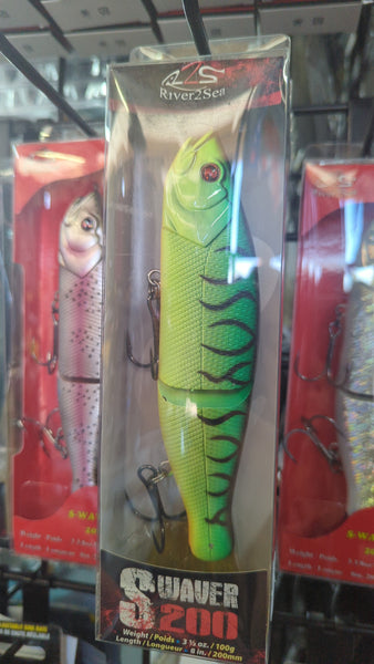 Swimbaits continue to leave a major footprint on the fishing industry, and River2Sea's new S–Waver is set to make her mark. Featuring a natural "S-Action" swimming motion, S-Waver will seductively wake the surface and call big gamefish in for a closer look. Hold your rod tip up and S–Waver is a surface lure, allow the bait to slowly sink and the S-Action continues under water. The S-Action swimming motion is created by River2Sea's exclusive Pin and Tenon Hinge and accentuated by her soft PVC tail. That seductive wake will only be interrupted by the explosion of a massive strike.