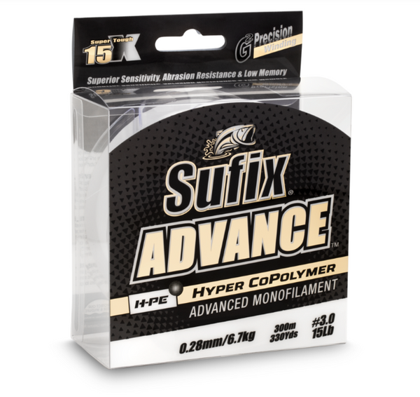The mono that thinks it's a braid. The most abrasion resistant, supple and sensitive monofilament ever. Sufix® Advance™ Monofilament is a combination of HMPE and Hyper Copolymer™ creating superior abrasion resistance, low stretch and sensitivity that has never been seen before.